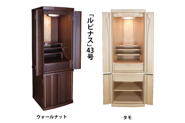 新製品「リバプール43号」「ルピナス43号」「アイリス14号」などモダン仏壇を出展します。