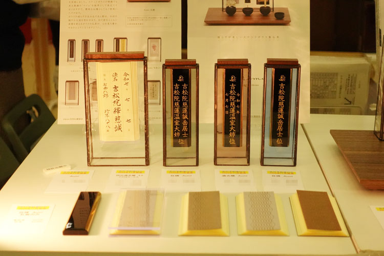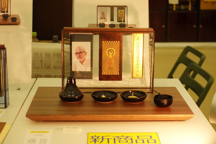 彦根仏壇事業協同組合の有志グループ・NANAPLUSのモダンな作品(自由壇など)、同組合の吉田松蔵商店の展示(仏壇・仏具・小物類)が多数展示され、いずれも好評。ステンドガラス製仏具が新作。