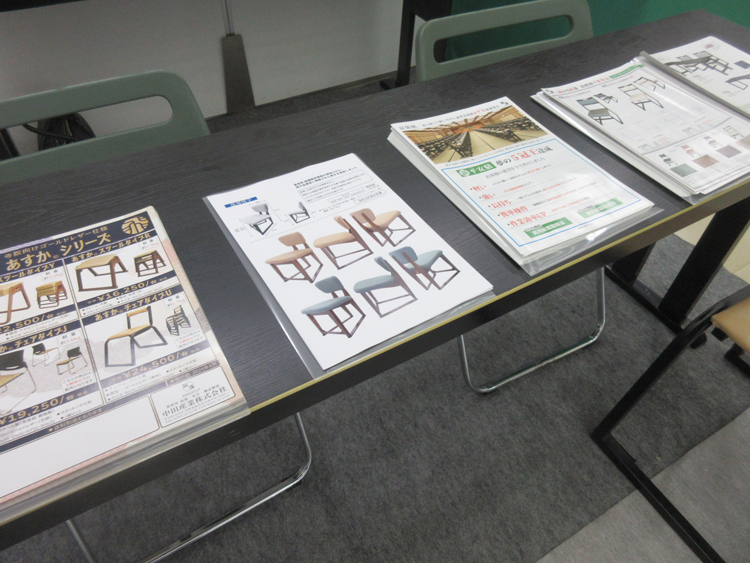 寺院用の軽量化の椅子、合理性・機能性に優れたテーブルなどを展示。