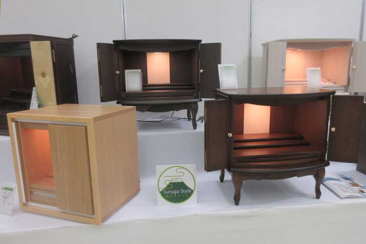 都市型仏壇、仏具を多数各種展示。スルガスタイルのシリーズが好評。
