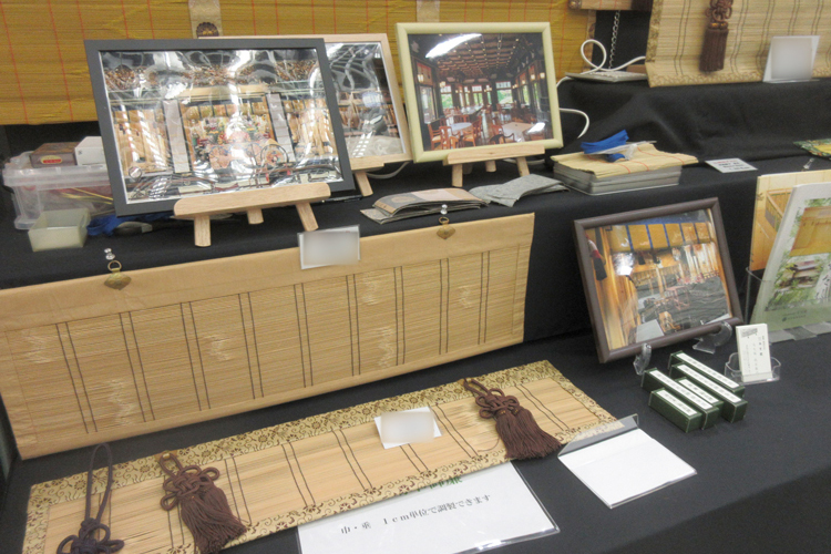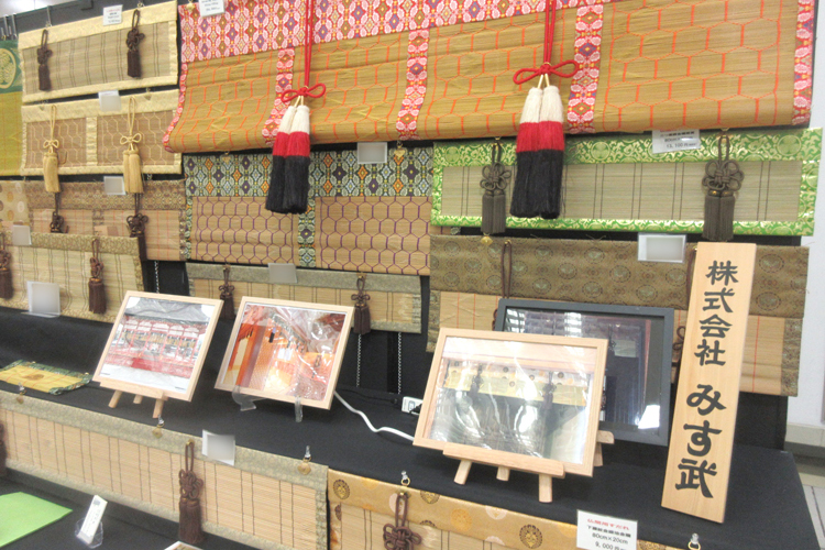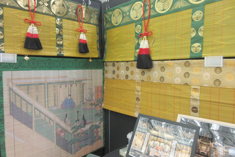 仏間用すだれ、みすを各種展示。カタログ、納品画像、生地サンプルを展示。
