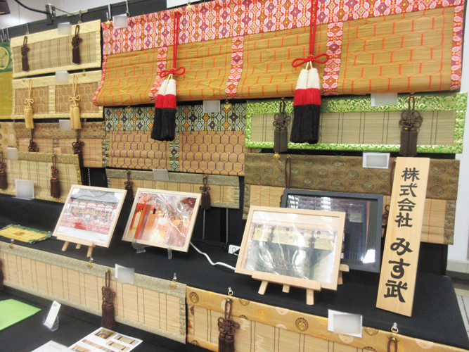 都人の姿をプリントした御簾、仏間用すだれ、みすを各種展示致します。カタログや納品動画、生地サンプルの展示も行います