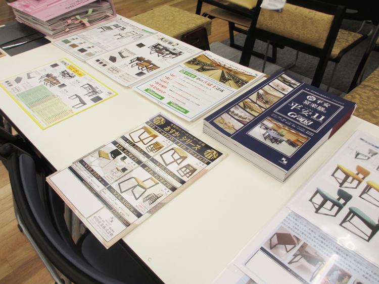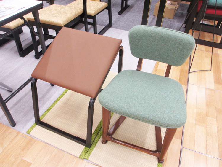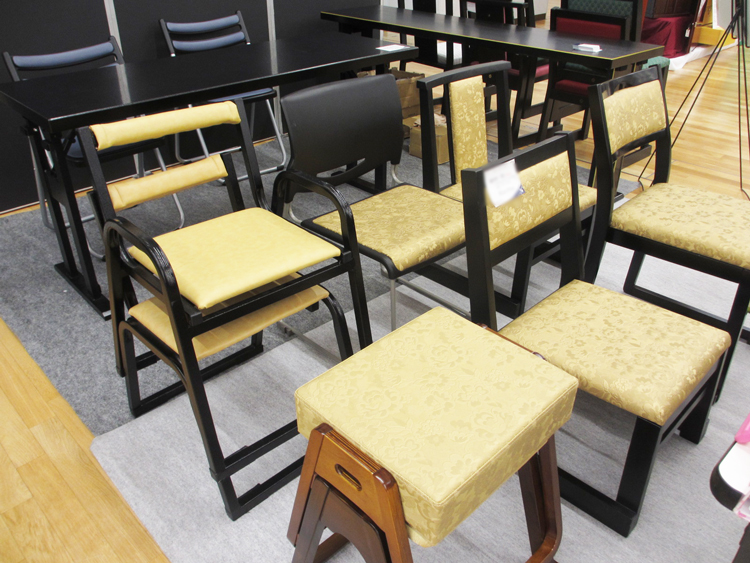 合理性、機能性に優れた椅子やテーブルなど、新作では御寺院様用の軽量化の椅子を展示。