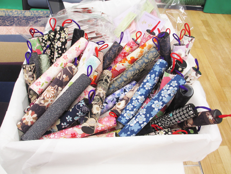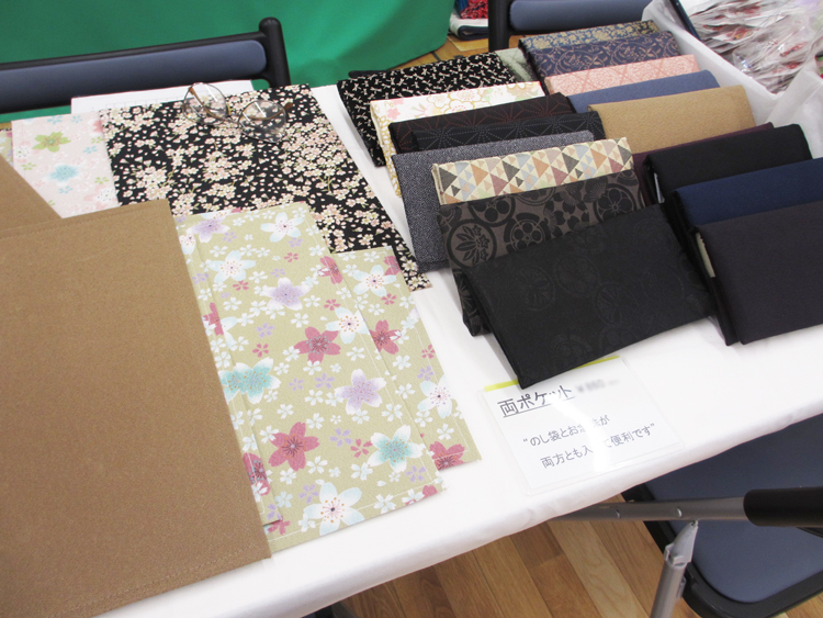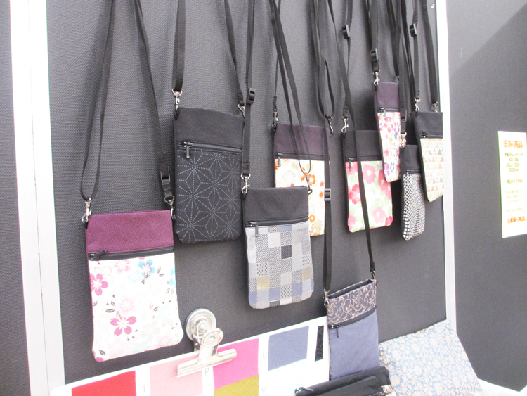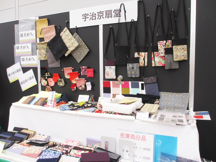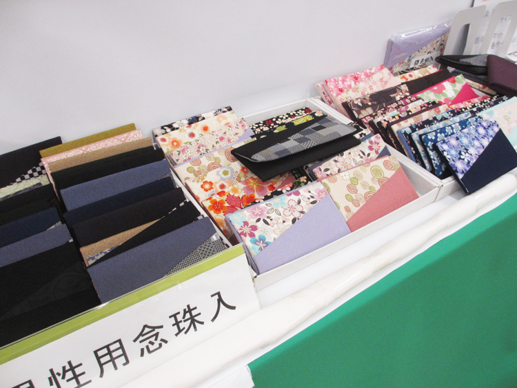 京友禅の生地を使った御念珠入製造、防炎マットを展示。